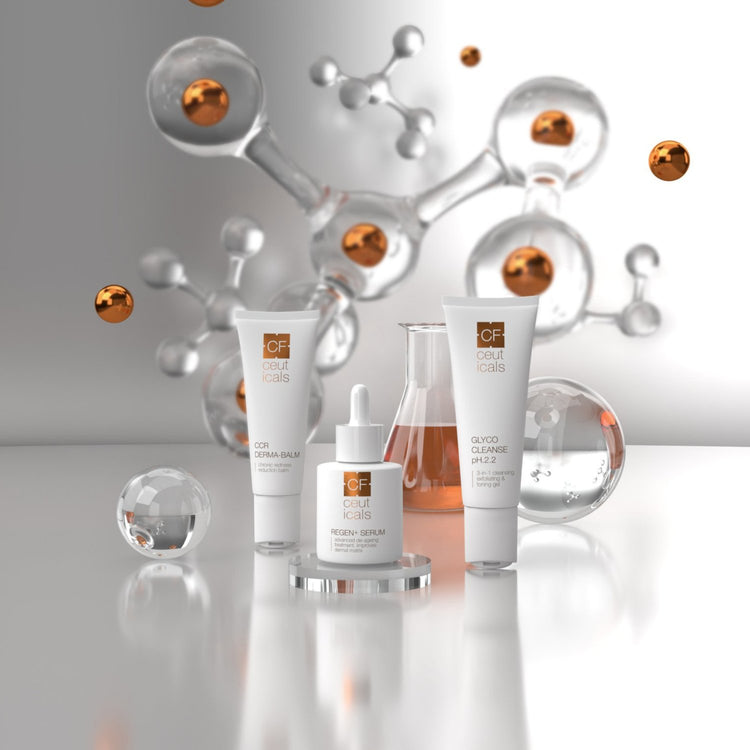 CF Ceuticals multi-functional formulations elevate the skin’s function and metabolism. Each product has been compounded from superior active ingredients that enhance cell rejuvenation, while delivering sophisticated dermal nutrition and enhanced hydrolipid protection.